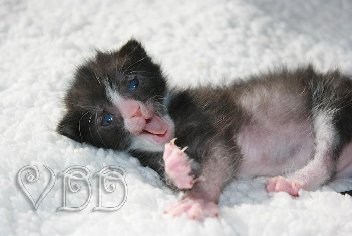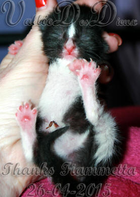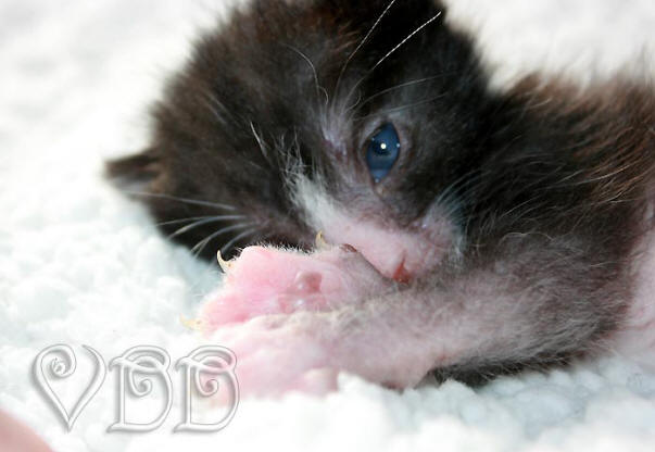 Fiamma Romulus et Remus ont 15 jours Voici notre chérie Fiamma qui suce son pouce. On peut très bien voir que sa fourrure est moins dense.