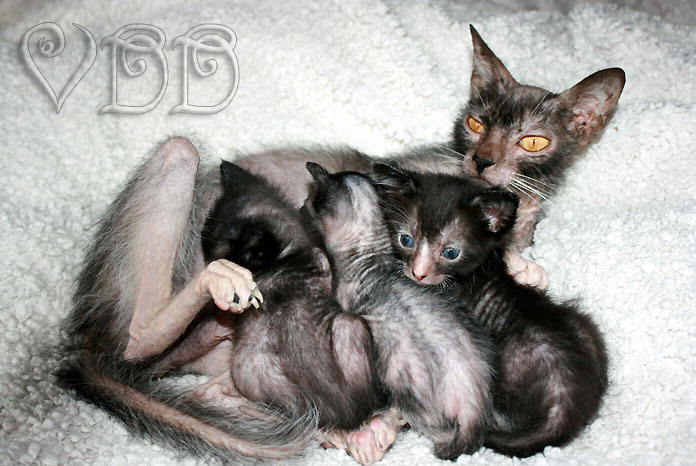 Nos Lykois babies issus du premier mariage Lykoi x Lykoi en Europe sont nés le 26 avril 2015.