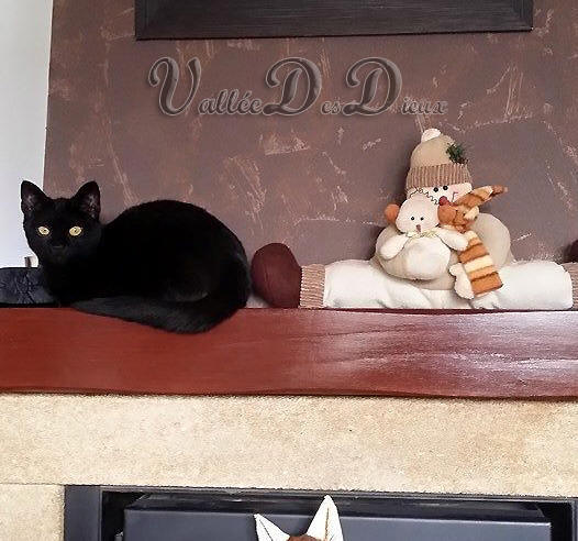 Janvier 2015, Bella a sa place préférée sur la cheminée!